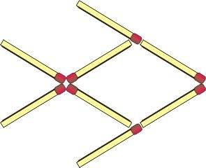 Move two matchsticks to make four triangles that are all the same size.
